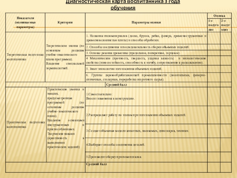 Слайд 6Диагностическая карта воспитанника 3 года обучения