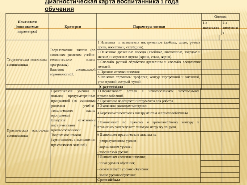 Слайд 2Диагностическая карта воспитанника 1 года обучения