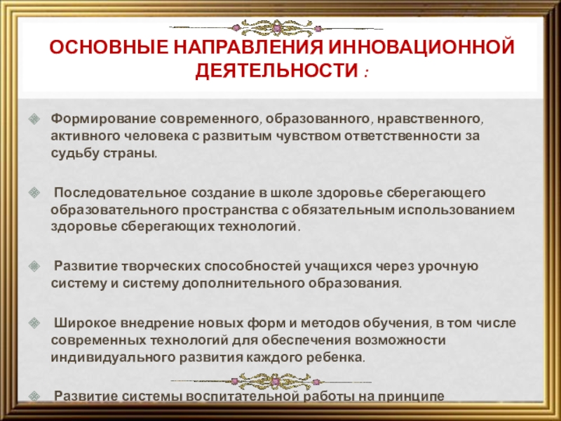 Основные направления инновационной деятельности :