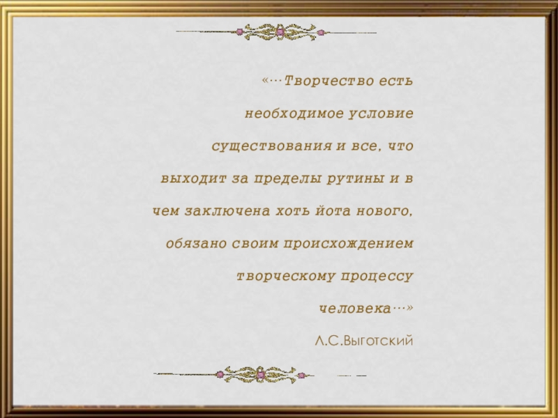 Слайд 2«…Творчество есть необходимое условие существования и все, что выходит за пределы