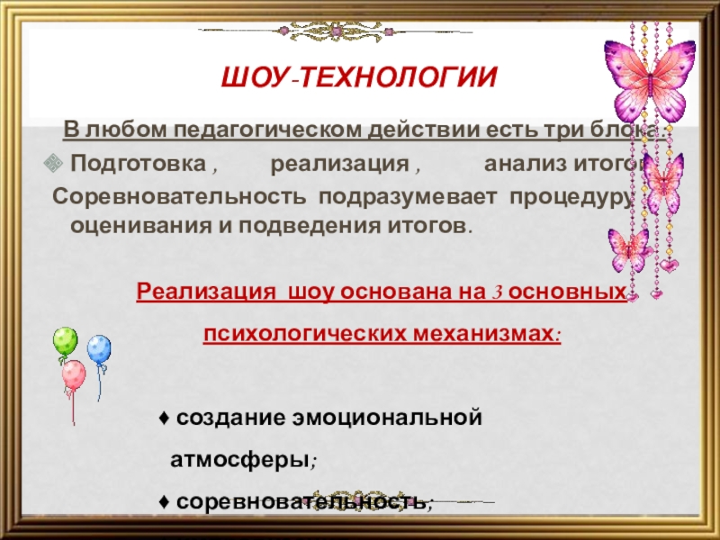Реализация шоу основана на 3 основных психологических механизмах: