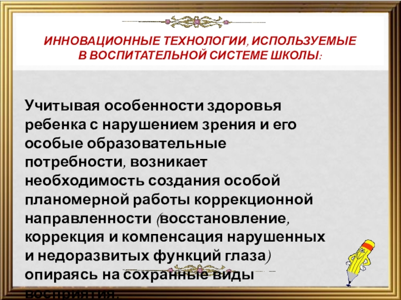 «Инновационные технологии в воспитательном процессе при работе со слабовидящими детьми».