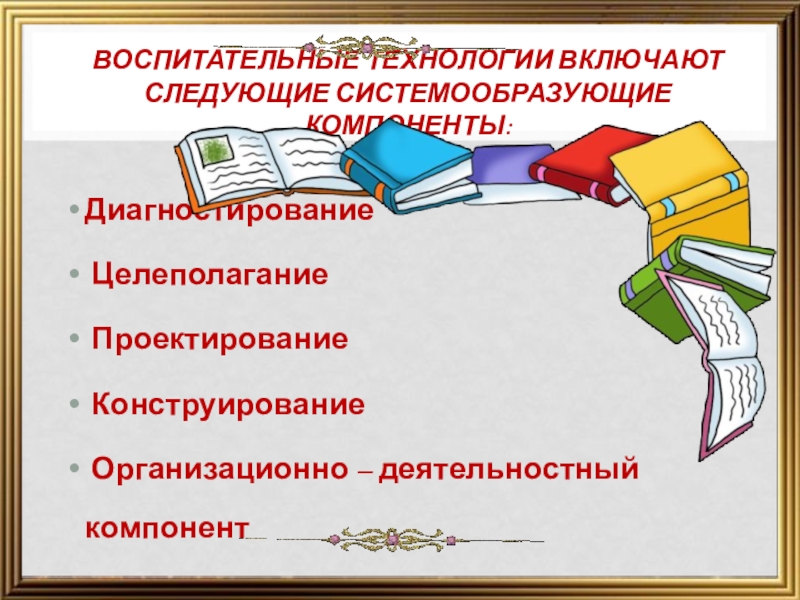 Воспитательные технологии включают следующие системообразующие компоненты: