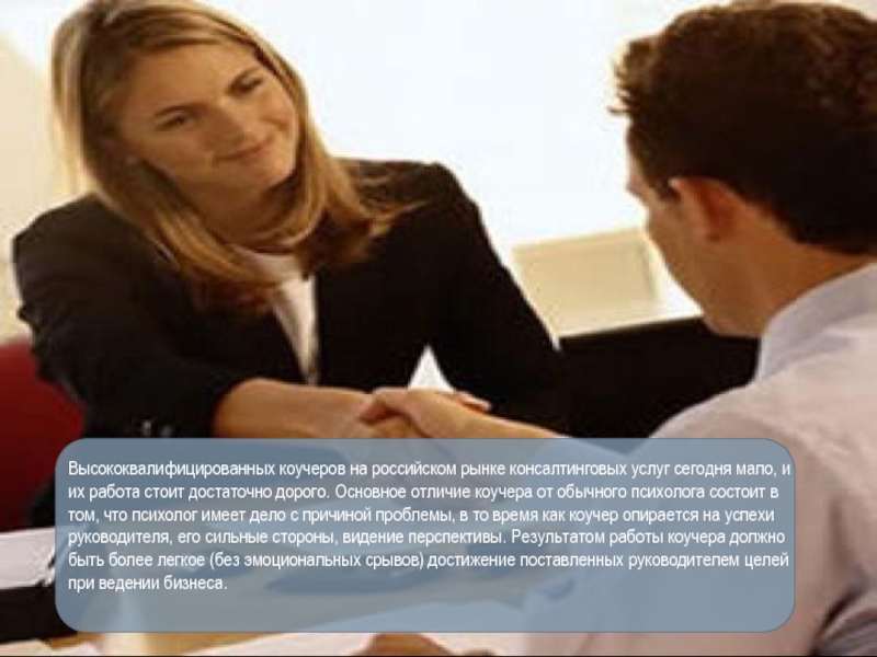 Слайд 7Высококвалифицированных коучеров на российском рынке консалтинговых услуг сегодня мало, и их