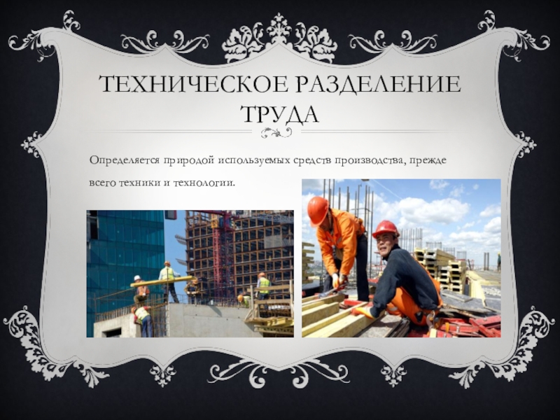 Техническое разделение трудаОпределяется природой используемых средств производства, прежде всего техники и технологии.