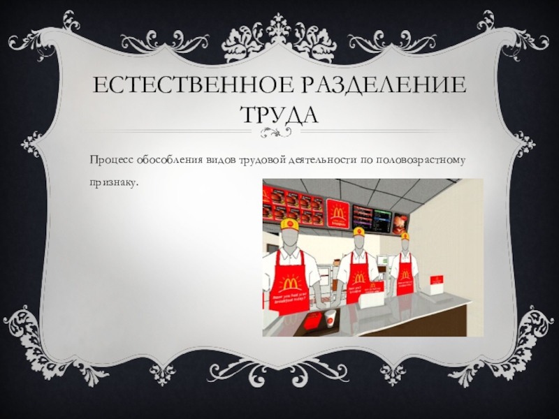 Естественное разделение труда Процесс обособления видов трудовой деятельности по половозрастному признаку.