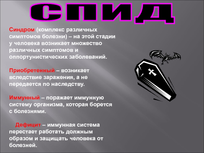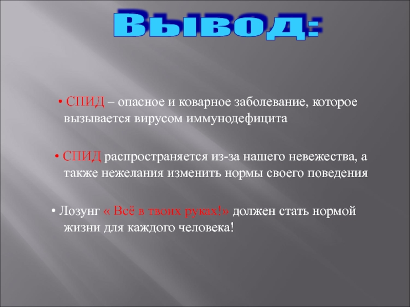 • СПИД – опасное и коварное заболевание, которое вызывается вирусом иммунодефицита