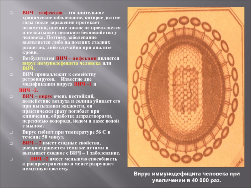 ВИЧ принадлежит к семейству ретровирусов. Известно две модификации вируса ВИЧ –1 и