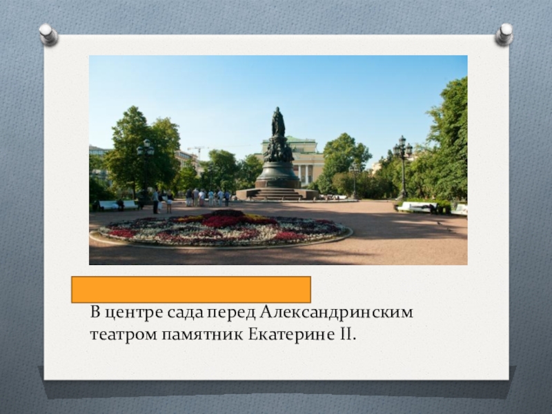 В центре сада перед Александринским театром памятник Екатерине II.