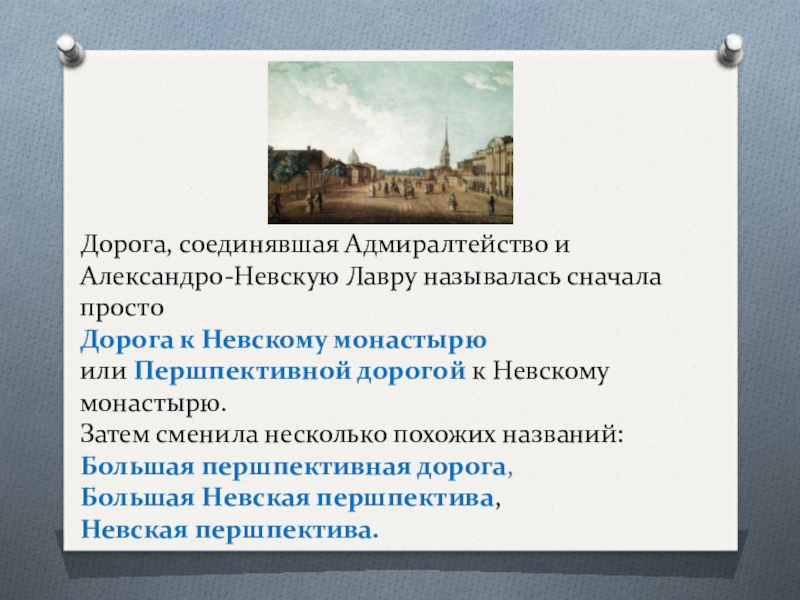 Слайд 6Дорога, соединявшая Адмиралтейство и Александро-Невскую Лавру называлась сначала просто