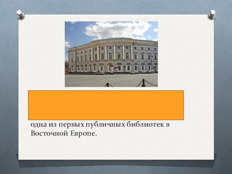 Слайд 20Российская национальная библиоте́ка (Импера́торская публи́чная библиотека) — Государственная публичная библиотека — одна