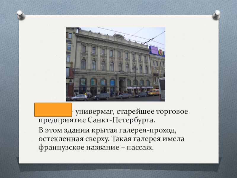 Слайд 23Пассаж – универмаг, старейшее торговое предприятие Санкт-Петербурга.