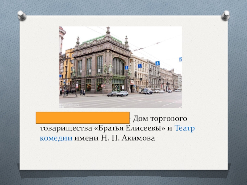 Слайд 17Елисеевский магазин - Дом торгового товарищества «Братья Елисеевы» и Театр комедии