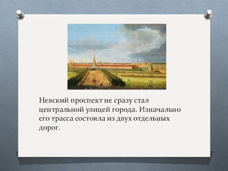 Слайд 4Невский проспект не сразу стал центральной улицей города. Изначально его трасса