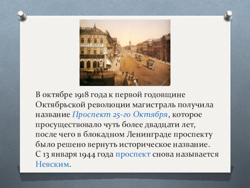 после чего в блокадном Ленинграде проспекту было решено вернуть историческое название.