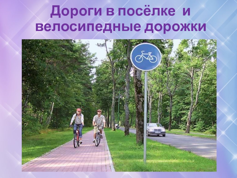 Слайд 25Дороги в посёлке и велосипедные дорожки