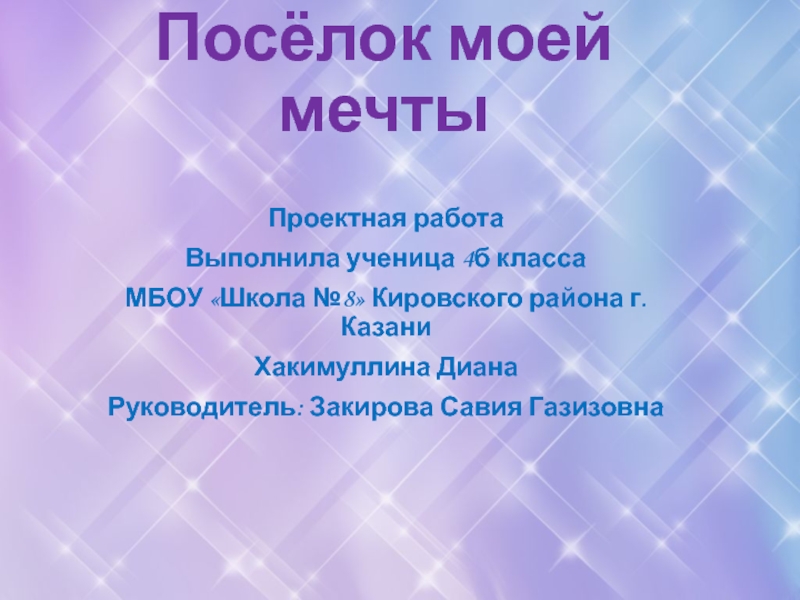 Я хочу жить в поселке рядом с людьми, которых бы я хорошо знала, для которых поселок был нашим общим домом. Природу данной территории оставить нетронутой. Строить небольшие дома, на свободных местах, т.е. вписывая дома в природный ландшафт данной местности.