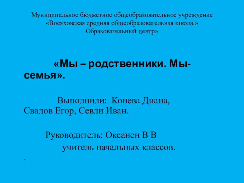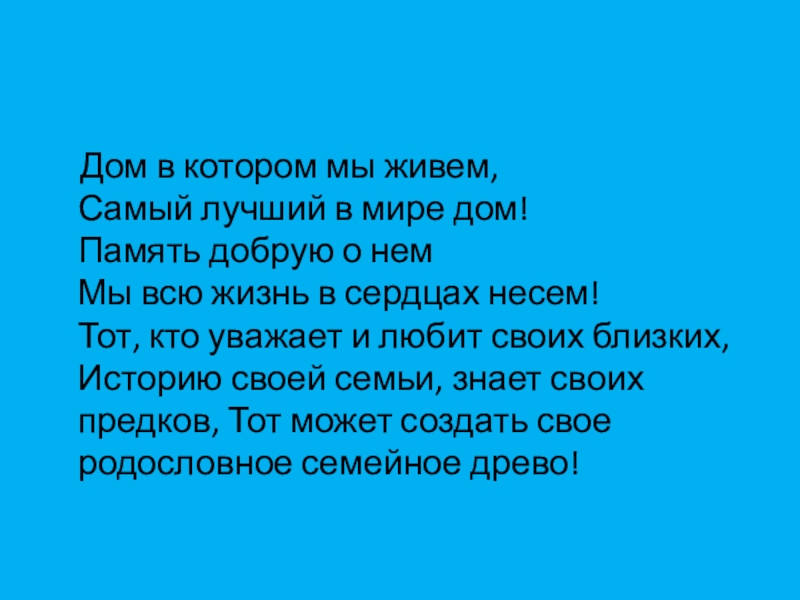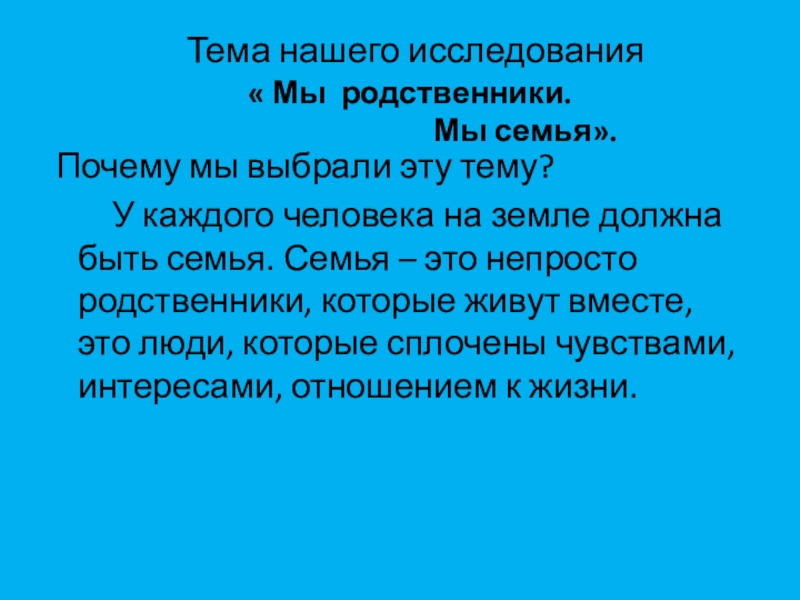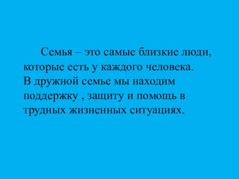 У каждого человека на земле должна быть семья. Семья – это непросто родственники, которые живут вместе, это люди, которые сплочены чувствами, интересами, отношением к жизни.