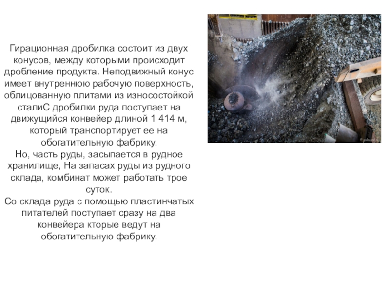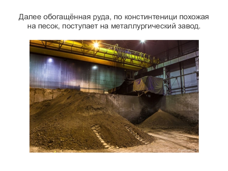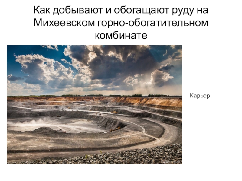 Здание обогатительной фабрики Михеевского ГОКа и склад крупнодробленой руды.