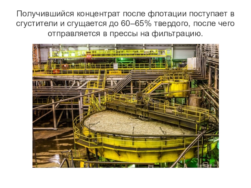 Затем пульпа поступает в отстойник, где частички пустой породы оседают.