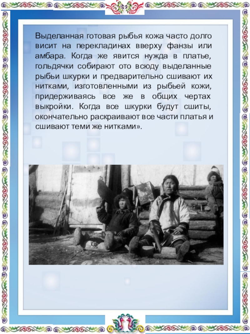 Слайд 9У нанайцев для разных изделий использовалась кожа разных видов рыб: кеты