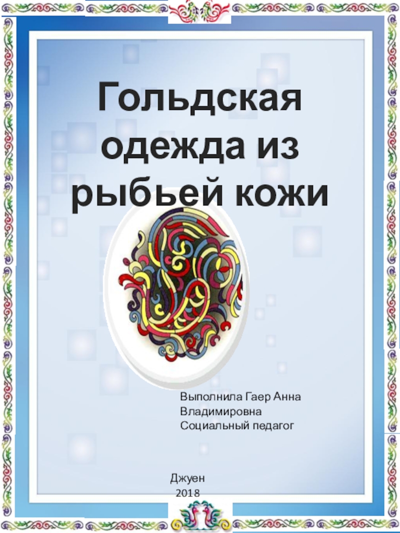 технологии изготовления орнаментов из рыбьей кожи, то лучше опять обратиться к И. А. Лопатину: «Начинается с того, что гольдячка на мягкой и тонкой бересте рисует обухом ножа узор, сложив предварительно лист бересты в несколько раз, сколько ей нужно повторить один и тот же рисунок. Когда рисунок закончен и поправлен в неудачных местах, гольдячка вырезает его при помощи особого короткого и заостренного к носку ножа, надавливая на его рукоятку своим подбородком. Таким образом получается трафарет. По этому трафарету гольдячка чертит обухом ножа узор уже на лоскутке рыбьей кожи, а затем вырезает. Когда все узоры будут вырезаны, мастерица приступает к окрашиванию...» Из этого описания становится ясно, что нанайская женщина не делала никаких предварительных набросков, создавая мотив по памяти. А точнее, отчетливо представляя его в уме. И эта уникальная черта присуща всем северным народам.