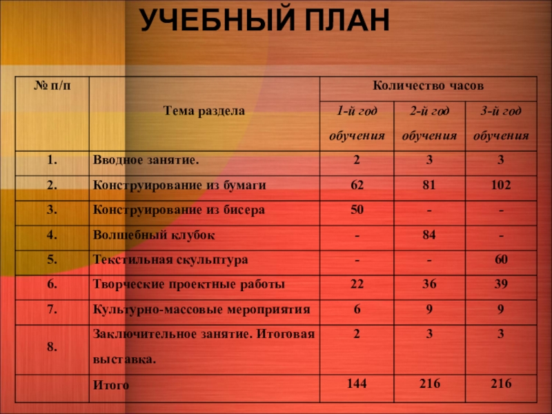 Слайд 7УЧЕБНЫЙ ПЛАН