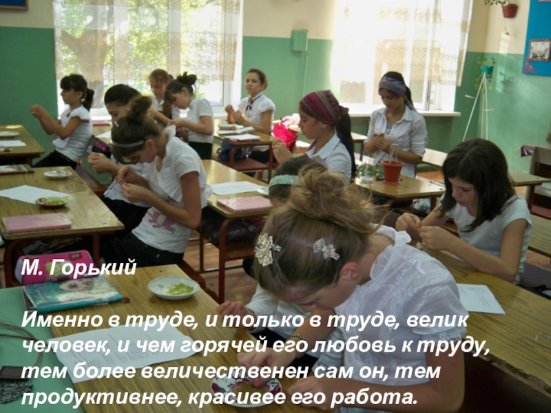 Слайд 23М. Горький   Именно в труде, и только в труде, велик человек,