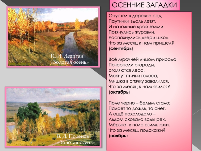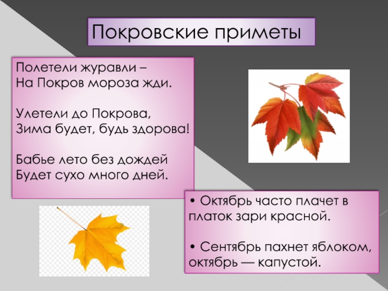 • Сентябрь пахнет яблоком, октябрь — капустой.