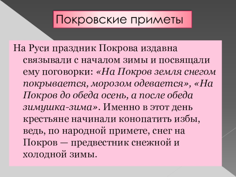Покров, Покров! Покрой землю снегом, а девушку платком.