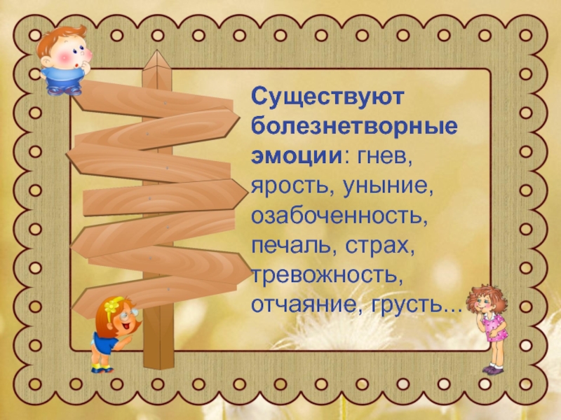 Существуют болезнетворные эмоции: гнев, ярость, уныние, озабоченность, печаль, страх, тревожность, отчаяние, грусть...