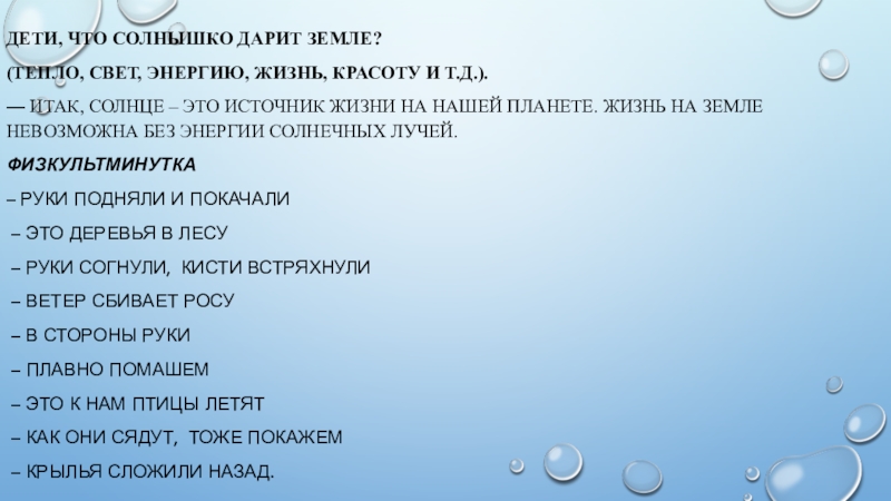 (тепло, свет, энергию, жизнь, красоту и т.д.).