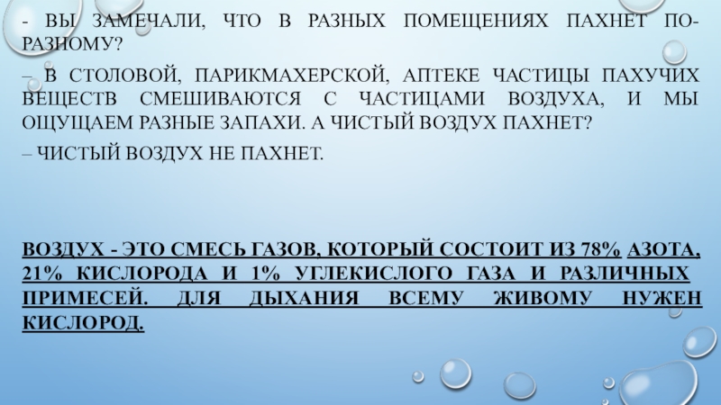 Слайд 14- Вы замечали, что в разных помещениях пахнет по-разному?
