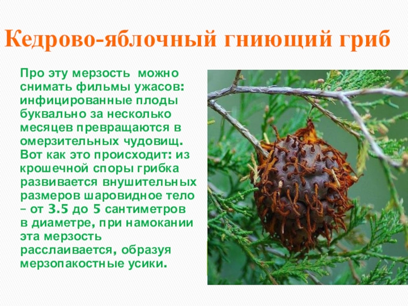 Слайд 26Кедрово-яблочный гниющий гриб
