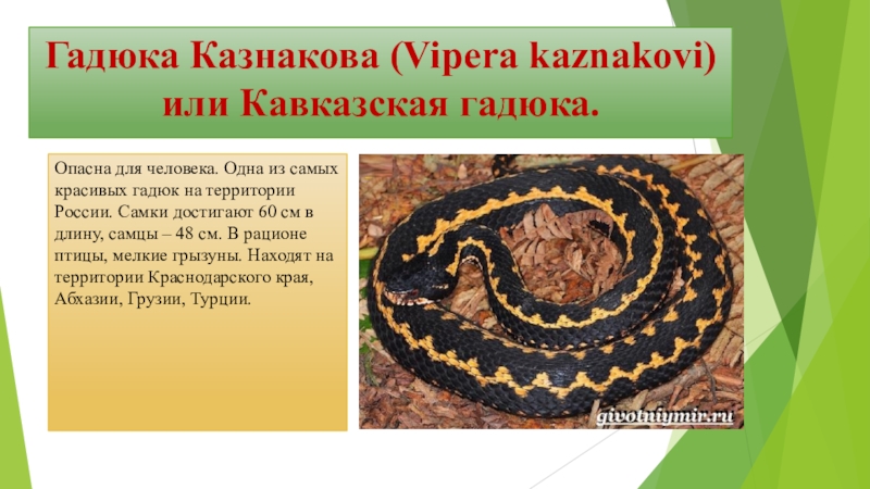 Слайд 12Гадюка Казнакова (Vipera kaznakovi) или Кавказская гадюка.