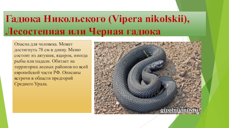 Слайд 13Гадюка Никольского (Vipera nikolskii), Лесостепная или Черная гадюка