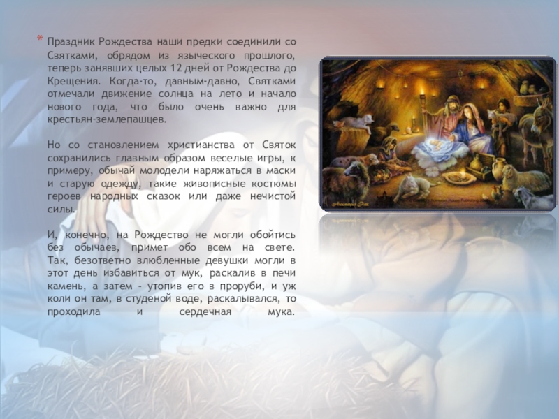 Слайд 5Праздник Рождества наши предки соединили со Святками, обрядом из языческого прошлого,