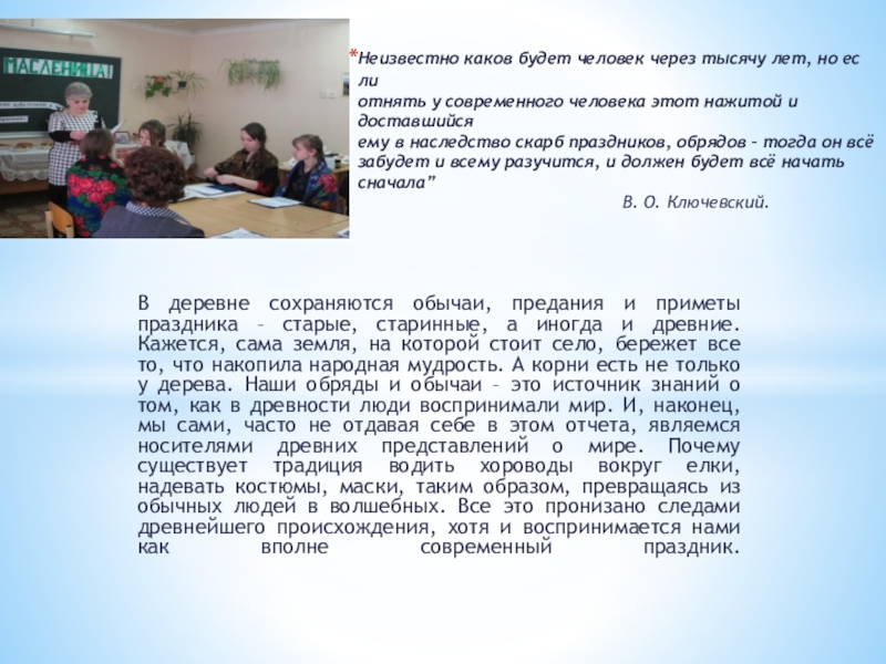 Слайд 2В деревне сохраняются обычаи, предания и приметы праздника – старые, старинные,