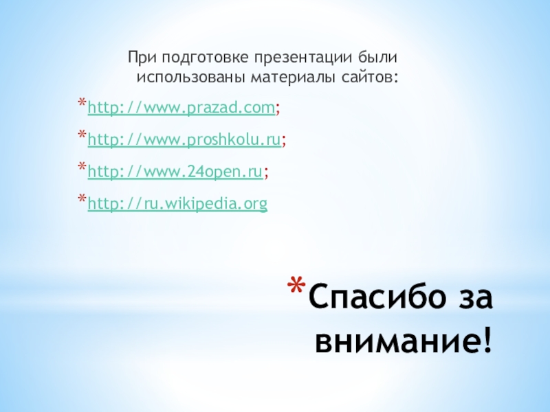 При подготовке презентации были использованы материалы сайтов: