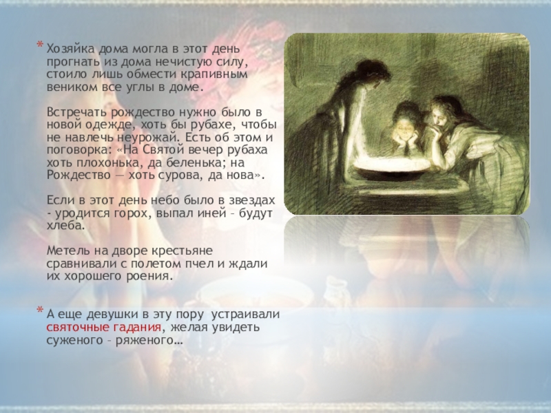 Слайд 6Хозяйка дома могла в этот день прогнать из дома нечистую силу,