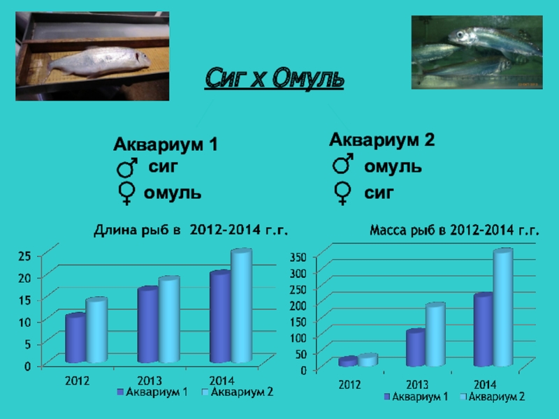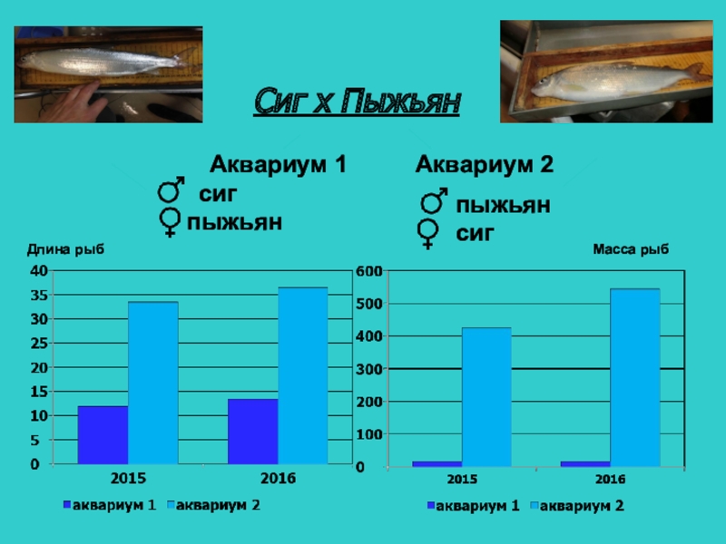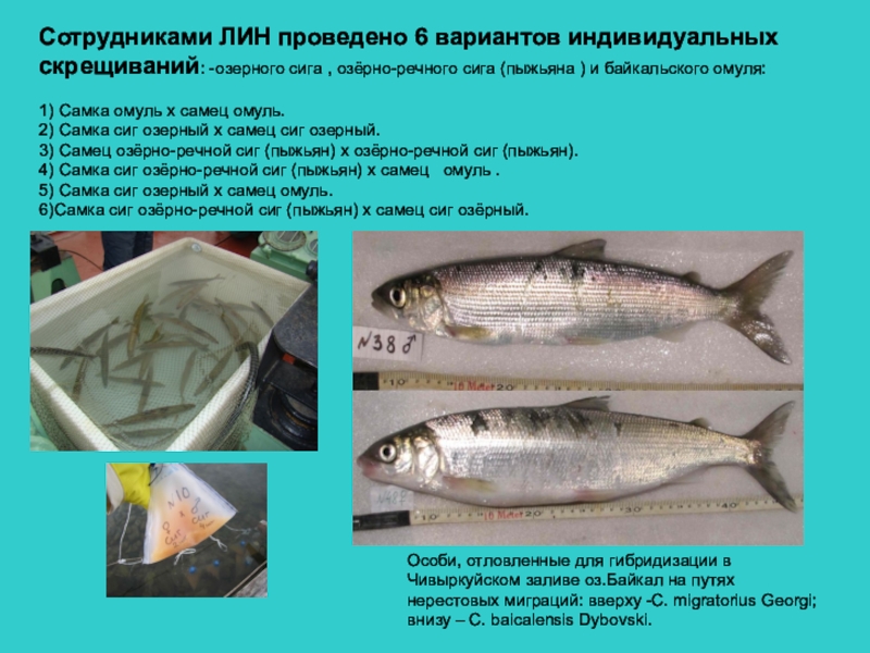 Особи, отловленные для гибридизации в Чивыркуйском заливе оз.Байкал на путях нерестовых миграций: вверху -C. migratorius Georgi; внизу – C. baicalensis Dybovski.