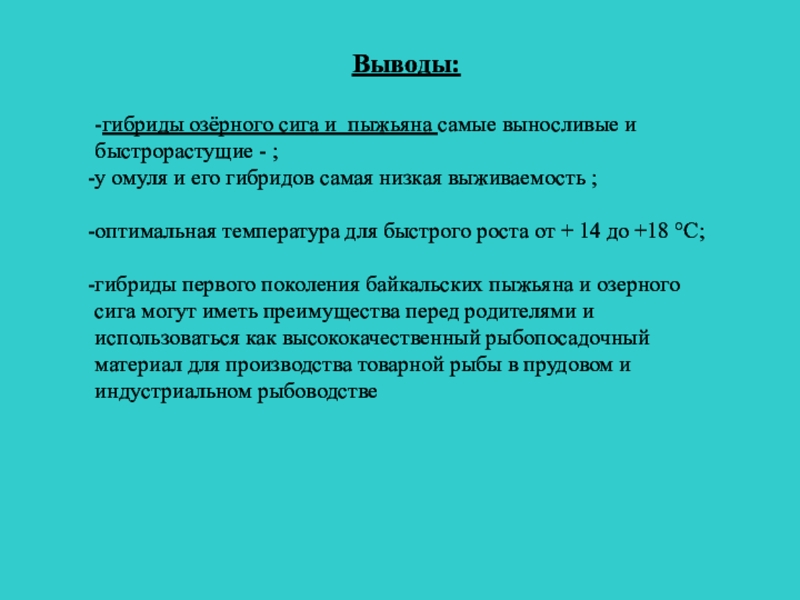 Экологический диапазон для сиговых – +0.2 - +10 С,