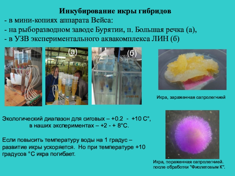 Если повысить температуру воды на 1 градус – развитие икры ускоряется. Но при температуре +10 градусов С икра погибает.