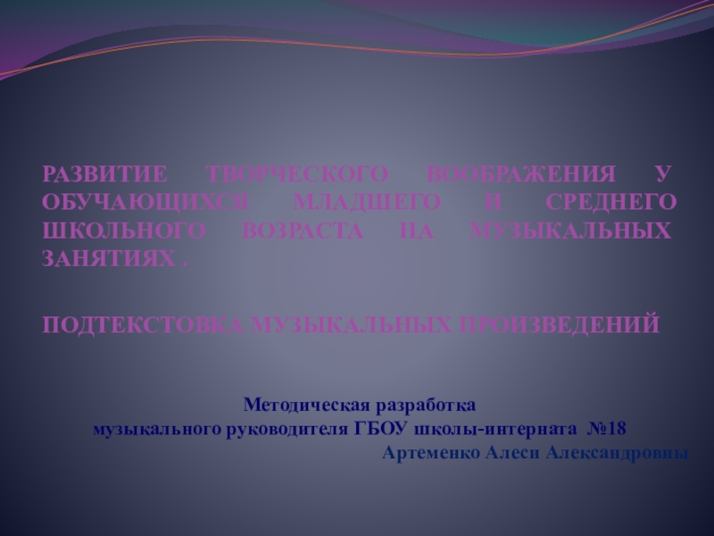 РАЗВИТИЕ ТВОРЧЕСКОГО ВООБРАЖЕНИЯ У ОБУЧАЮЩИХСЯ МЛАДШЕГО И СРЕДНЕГО ШКОЛЬНОГО ВОЗРАСТА НА МУЗЫКАЛЬНЫХ ЗАНЯТИЯХ .