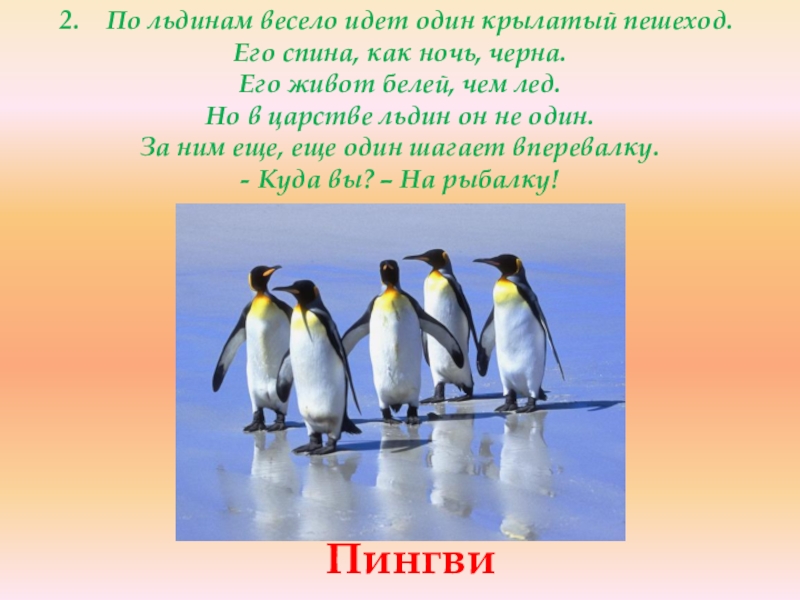 Слайд 23По льдинам весело идет один крылатый пешеход.