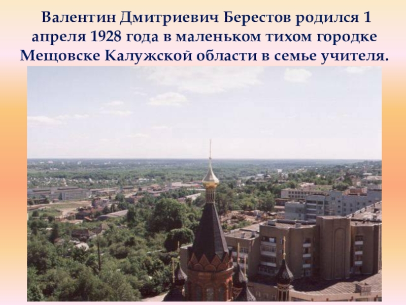 Слайд 2 Валентин Дмитриевич Берестов родился 1 апреля 1928 года в маленьком
