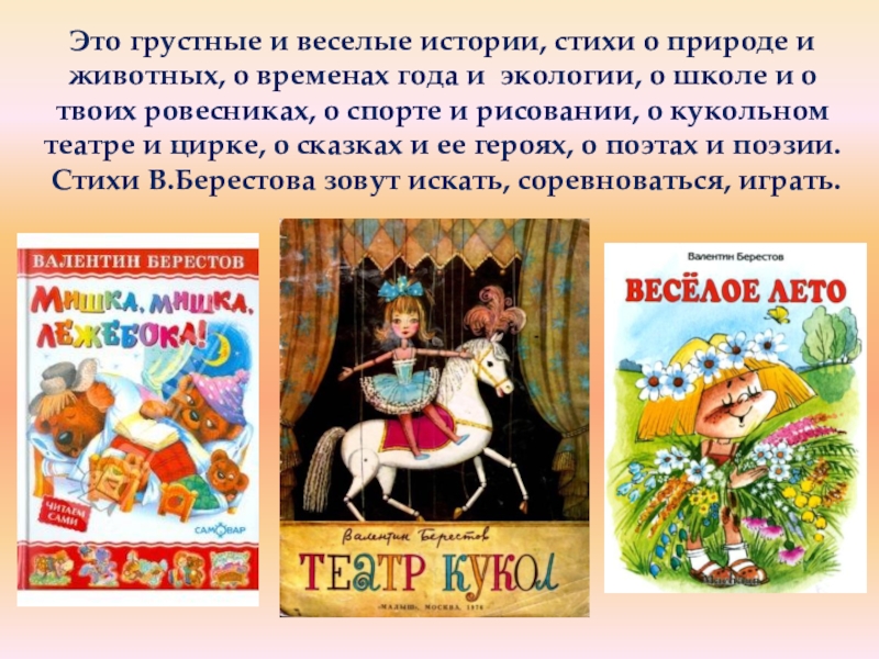 Стихи В.Берестова зовут искать, соревноваться, играть.