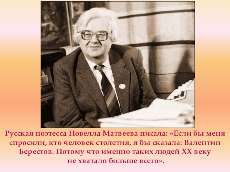 столетия, я бы сказала: Валентин Берестов. Потому что именно таких людей ХХ веку