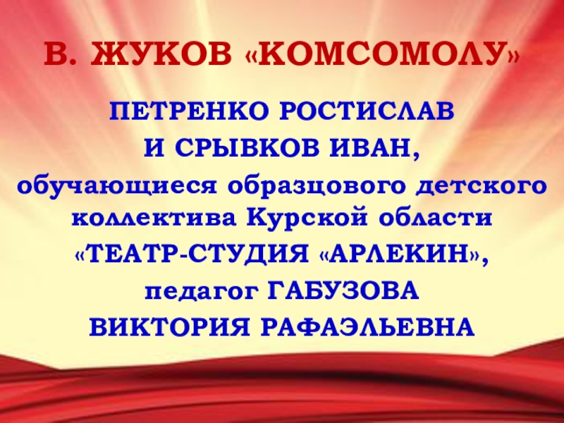 Слайд 3В. ЖУКОВ «КОМСОМОЛУ»