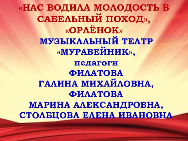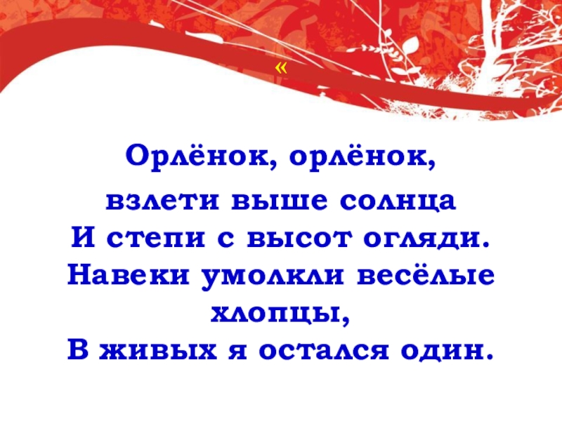 Слайд 23«НАС ВОДИЛА МОЛОДОСТЬ В САБЕЛЬНЫЙ ПОХОД», «ОРЛЁНОК»